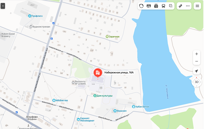 Почтовый адрес: 223054 п/о Юзуфово, ул.Набережная, 16а